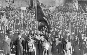 En Petrogrado tienen lugar manifestaciones multitudinarias con motivo del Día de la Mujer (el Día de las Trabajadoras), muchas fábricas e industrias paran su producción, las columnas de obreros se dirigen de las periferias al centro de la ciudad y empiezan los primeros choques contra las unidades de militares y de cosacos.